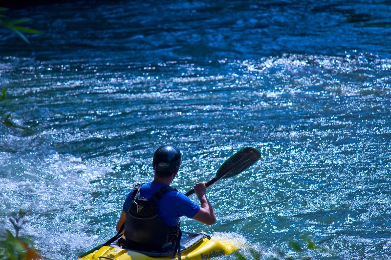 川で行う本格的なカヤックはヘルメットやウェットスーツのように